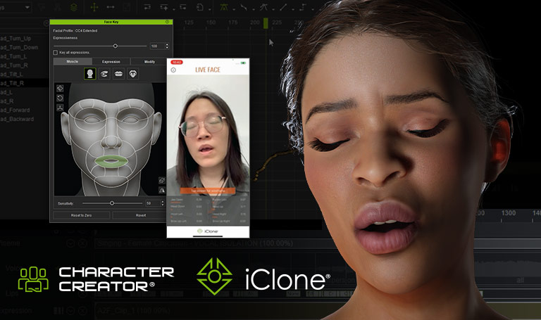 《Digital Soul 100+》等必備內容包為您的 CC 角色注入獨特個性。iClone 提供精準的語音唇形同步、情感豐富的表情操控、基於肌肉的臉部關鍵影格編輯,以及使用 iPhone 或 AccuFACE 視訊 AI 捕捉的臉部動態捕捉。