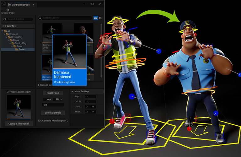 在 Unreal Engine 內以逼真的精準度為 CC 人物製作動畫。運用熟悉的 MetaHuman Control Rig,讓全身動作和臉部表情栩栩如生,快速完成製作。通用的 CC 標準為 Unreal 開發者提供前所未有的角色客製化彈性。豐富的內容生態系統讓部署動畫數位分身、異想天開的卡通人物、雙足生物和群體模擬成為可能。無論是經驗豐富的專業人士還是熱情的愛好者,CC Control Rig 都能激發您的創意願景。CC MetaHuman 互通性 >