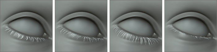 包含不同長度、密度、捲翹度和角度的逼真睫毛套組。這些套組適用於日常生活中的男性和女性人物。