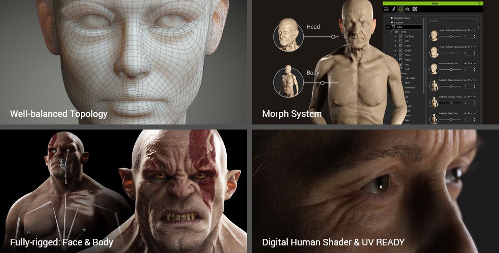 CC 基礎模型功能豐富,可根據您的偏好進行客製化。基於四邊形的拓樸最適合細分編輯,而策略性的邊緣迴圈則平衡了性能和美觀。簡化的 UV 和穩固的骨架綁定確保數位雕塑家和動畫師設定的基準不僅達到,而且超越。