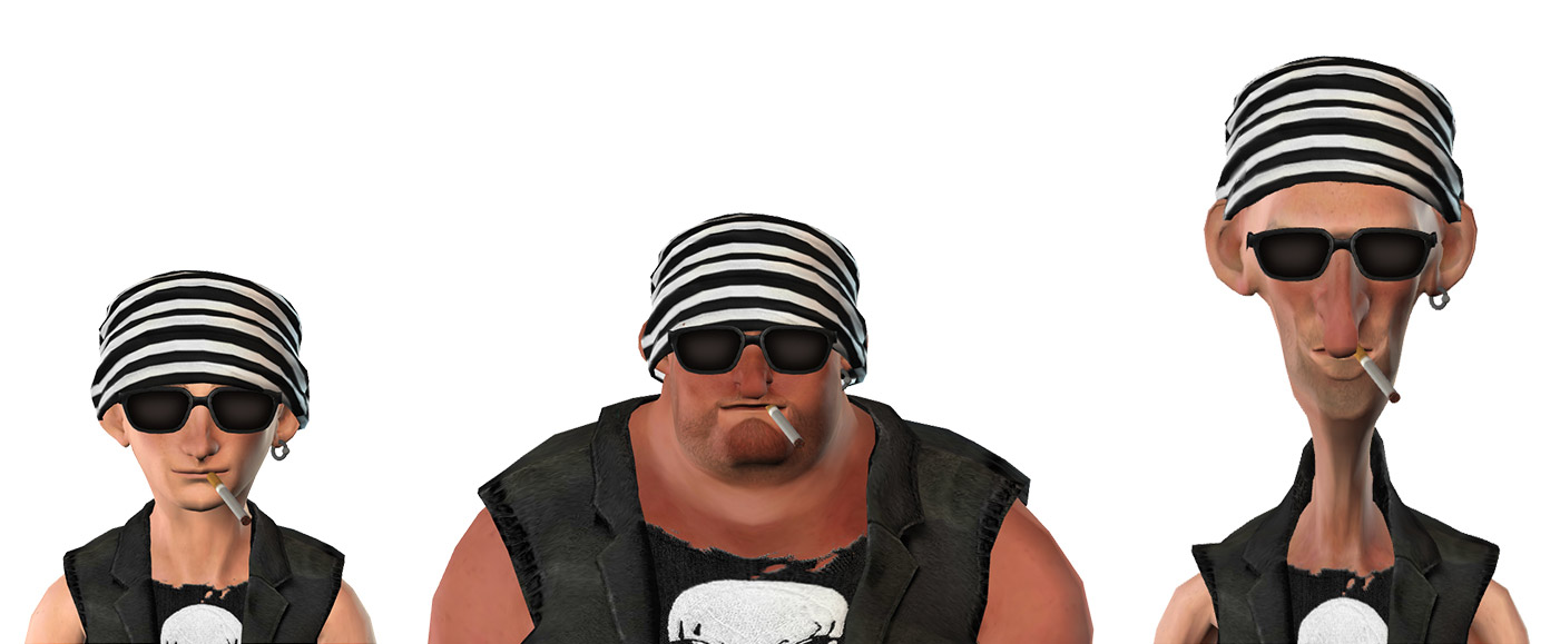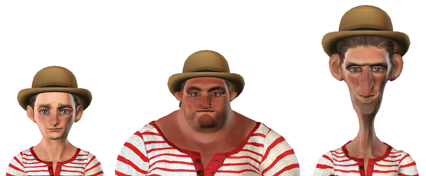 使用全新 CrazyTalk 8.1 衣服合身功能,所有衣服都會自動合身於各種體型。就可以在角色設定時細修衣服大小提高調整的彈性。