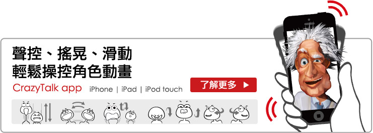 現在您的動畫創作不再僅限於桌上型電腦。7.2 版讓您可發佈角色至 iPhone, iPad 與 iPod touch,透過 CrazyTalk app 變為隨身攜帶的動畫作品!