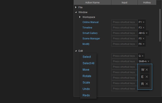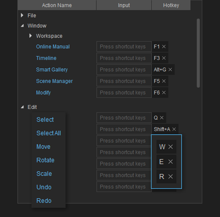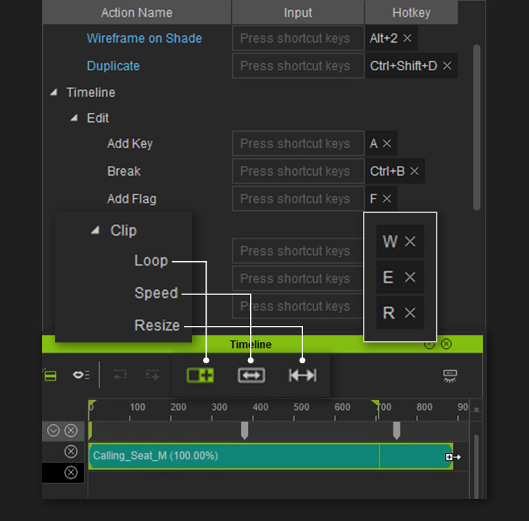 若要 iClone 更能使用者導向,幾乎所有 iClone 功能都能對應至使用者定義的快速鍵,尤其是 Windows 相容設備。此開放架構設計可徹底改變使用 iClone,或 Live Link 動態至其它 3D 工具的方式。