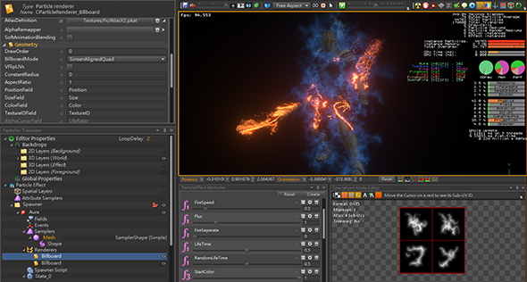 此系列中各種震撼的粒子特效由原技術合作夥伴 Persistant Studios 所提供。不但可直接將特效範本套用至專案,亦可調整其屬性;並可藉由導入個人化模型與各種資源檔案,讓視覺特效有更多無限的可能性。