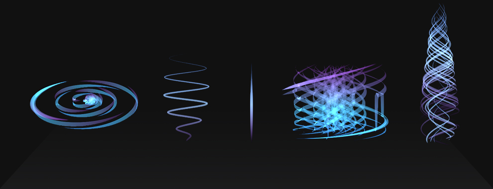 藉由彩帶屬性變換創建出扭曲、波動、螺旋、盤旋或放射狀動畫