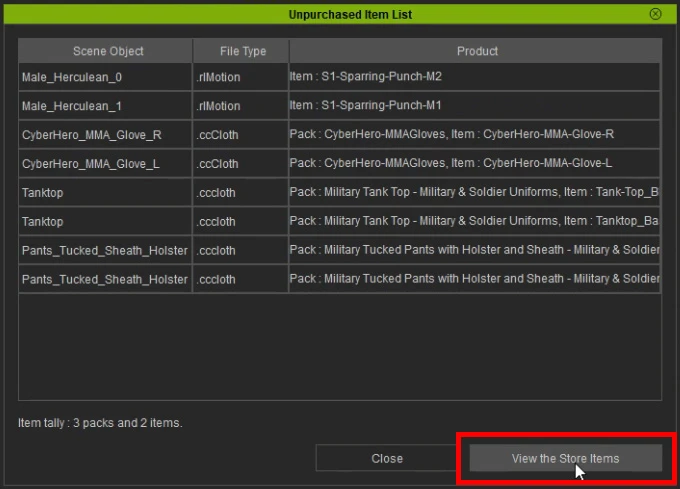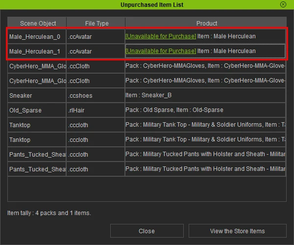 Installed Content: Installed content will be tagged as “Revoked” and revert to a trial state. Consequently, these content items cannot be updated and will display a watermark when loaded into a scene. Additionally, revoked items cannot be exported.