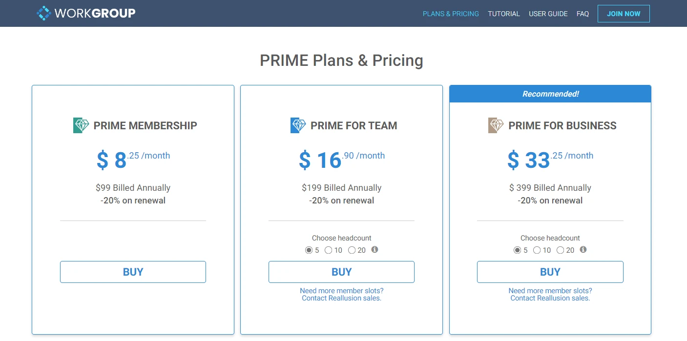 Prime for Team/Business subscribers have the flexibility to upgrade their Workgroup plans at any time. The residual value of the prior subscription plan will be credited to the new plan.