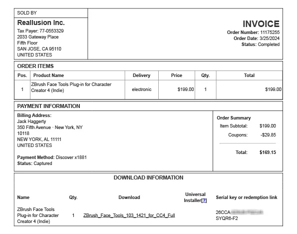 Workgroup Owners can access the order history, print invoices, and review billing details for cash transactions. This level of supervision encompasses purchases of applications, plugins, content, and DA points, spanning across the Software Store, Content Store, and ActorCore.